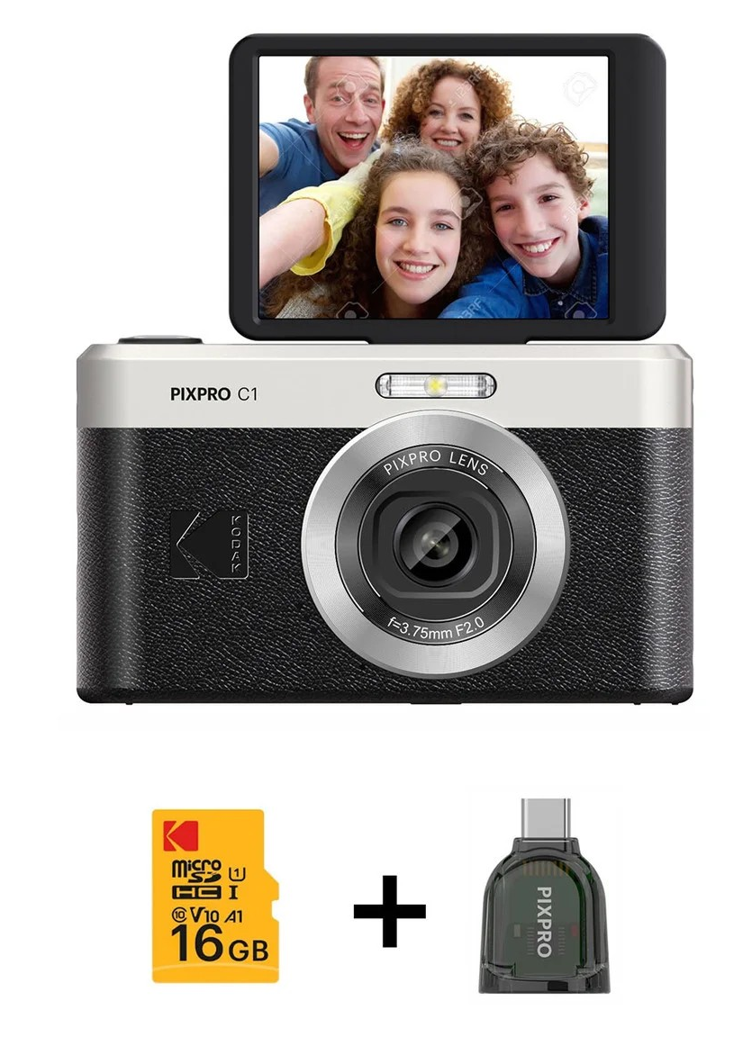 Astu ajattomien muistojen maailmaan Pixpro C1 -digitaalikameran avulla. Tässä kamerassa yhdistyvät vintage-tyyli ja moderni teknologia, joten se sopii täydellisesti kaikenikäisille trendsettereille. Kamerassa on 13 megapikselin CMOS-kenno ja 26mm F2.0 kiinteätarkenteinen objektiivi, joten sillä otat upeita kuvia helposti. 2,8″ 180° kallistettava LCD-näyttö mahdollistaa joustavat kuvauskulmat, ja 1080P Full HD -videokuvausominaisuus takaa laadukkaan videotallennuksen.
