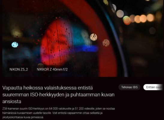 Täyden kennokoon Z5II-kameralla enemmän on enemmän. Z-sarjan huippukameroiden älykkäät automaattitarkennustoiminnot, tehokas tärinänvaimennus ja suuri valonherkkyys tuottavat täydellisesti tarkennettuja täyden kennokoon kuvia.