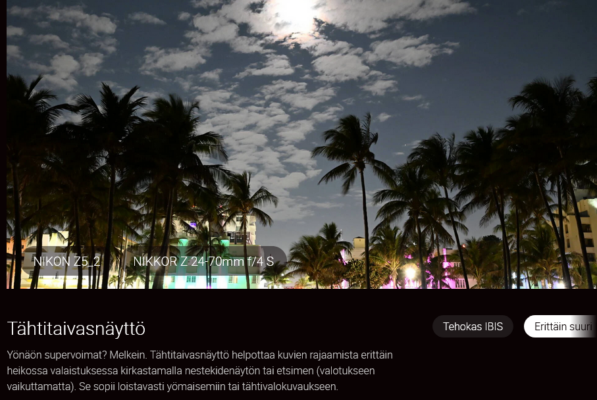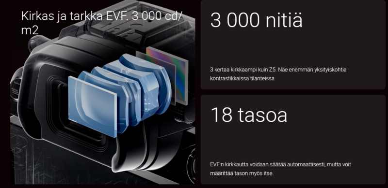 Automaattitarkennusjärjestelmä merkitsee jättiharppausta Z5-mallistolle. Tehokkaan EXPEED 7 -kuvaprosessorin ja -10 EV:n herkkyyden ansiosta automaattitarkennus toimii nopeasti ja tarkasti – myös yön pimeydessä.