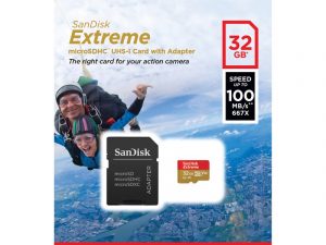 MicroSDHC Extreme 32GB +Sovitin, GoPro yhteensopiva 100MB/s A1 C10 V30 UHS-I U3
