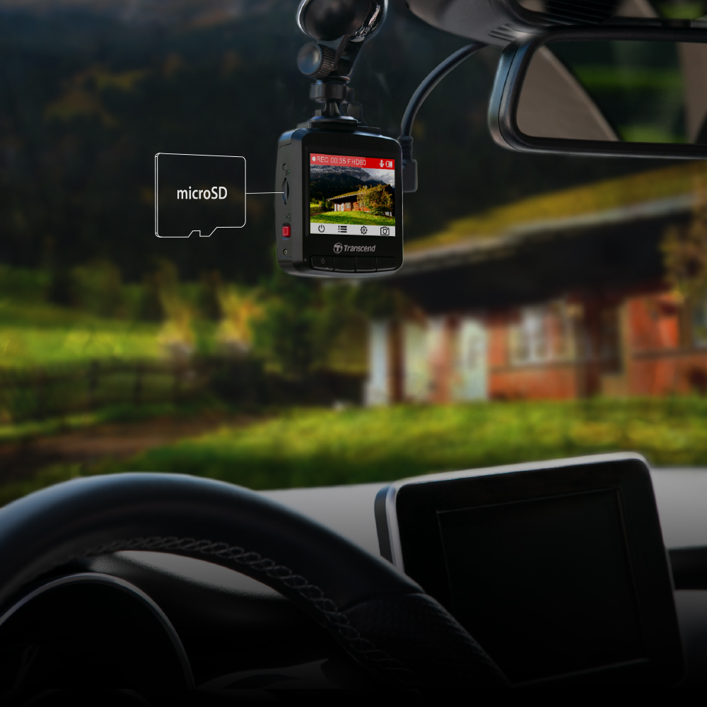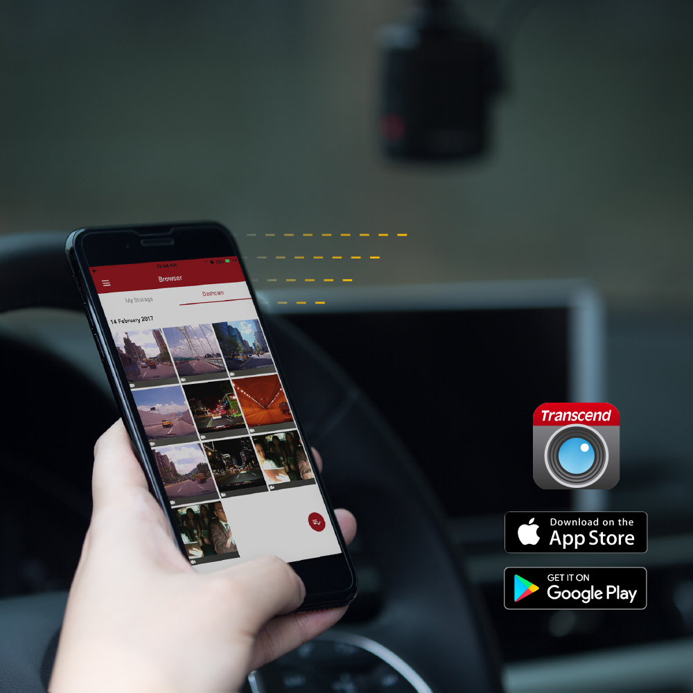 Transcendin DrivePro 250 -kojekamera on monipuolinen, edistyksellinen kojelautakamera, jossa on GPS/GLONASS-vastaanotin, sisäänrakennettu akku, kätevä tilannekuvapainike ja Wi-Fi-yhteys. Sen mukana tulee Transcend microSD-muistikortti, joka on rakennettu korkealaatuisesta NAND muistista ja testattu ankarissa ympäristöolosuhteissa.